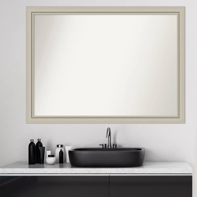 Give your bathroom the finishing touch with this 100% real wood Non-Beveled Wall Mirror framed with the Romano Silver Narrow frame. Individually made using traditional custom framing techniques, it has the quality you would expect from your local frame shop. It holds its value with premium finishing that can be appreciated up close. Because of our attention to detail and focus on artistry, architects, interior designers, and homeowners alike choose this mirror to create beautiful living spaces.