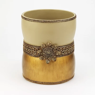 With it 2-tone body separated by the intricately carved braid and medallion, the Avanti Braided Medallion Gold Waste Basket adds an understated elegance to any bathroom or kitchen.