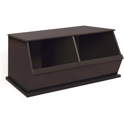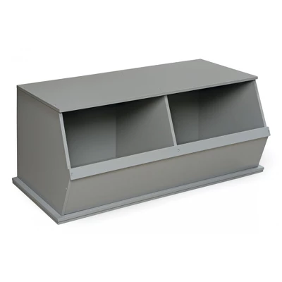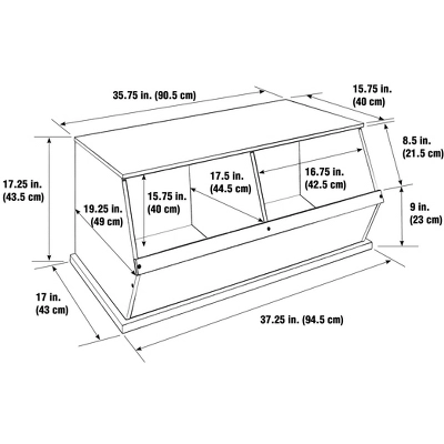 Badger Basket’s Two Bin Stackable Storage Cubby/Bin is a sturdy, modular storage solution for keeping all sorts of items tidy. Features two very generously sized open bins that can be stacked with other bins to expand your storage capacity (each bin unit sold separately). Can be used for storing books/magazines/newspapers, toys, winter accessories, sporting goods, videos/DVDs/CDs, craft supplies, linens, and more! Two-bin design helps with sorting and separating items. Wide mouth bin openings make it easy to load and unload. When you need to clean up quickly, it is a breeze to stuff everything inside! Great for kids when learning to sort, organize, and clean-up. Top surface offers an additional place to stack books, drop your purse, or arrange picture frames and keepsakes. For more storage, stack additional units (sold separately) next to or on top. Solid panel construction ensures that your treasured items stay inside the unit – nothing falls out the back or sides. Smooth surfaces are easy to clean and maintain. Badger Basket’s Two-Bin units mix and match with Badger’s Three-Bin units and Badger’s Shelf Storage units. Made with engineered wood. Painted finish. Metal hardware. Overall unit measures approximately 37.25 inches L x 19.25 inches W x 17.125 inches H. Each bin measures 16.75 inches Wide x 17.5 inches Deep x 15.6 inches High. Height from floor to top edge of front panel is 9 inches. Assembled weight: 33.7 pounds. All measurements approximate. Wipe clean with a damp cloth and mild detergent as needed and dry thoroughly. Adult assembly required. Illustrated assembly instructions included. Non-toxic painted finish. Product complies with all currently applicable safety standards and CARB ATCM standards. Some soft plastic/rubber toys (such as balls) can react with and cause damage to the finish when left in prolonged contact. Be mindful of what is stored in the unit and regularly check toys and the unit to prevent damage. When stacking multiple bins, you must always use the included safety brackets to secure the units together. If stacking three or more bins high, we recommend using wall anchor/furniture safety straps (not included) to anchor the units to the wall for safety and stability. Wall anchor straps are not included due to the many types of walls found in homes. Please consult with your local hardware retailer about your particular walls, home, and necessary hardware. Product may vary slightly from shown and described. Props/accessories shown are for illustration purposes only and are not included with the product. Actual color/finish may vary slightly from screen display. This item ships in its original carton that may include a product photo.