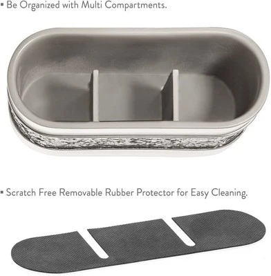 ADD A TOUCH OF BEAUTY: You’ll love this elegant silver brushed nickel design of the bathroom shelf organizer accented with mosaic glass detailing in the middle.No More ClutterAlways take ages to get ready in the morning? Never seeming to find that makeup brush orright eyeliner? Then Creative Scents bath shower organizer will finally put a stop to all the hassle.Measuring 8.5” x 3.5” x 4.8” and partitioned into 3 compartments, you’ll finally tidy upthat countertop or sink and have everything right where you need it. What makes this bathroomorganizer truly special is just how versatile it is. Whether you’re looking for a bathroom organizer,cosmetic brush caddy, or toothbrush holder, this one bathroom organizer is all you need!Here’s what makes this Bathroom Organizer for the bathroom a must-have:Partitioned to make organizing a total breeze.Beautiful color and patterns to complement any decor.Made using highquality resin that keeps mold at bay.Slim design that easily sits on most sinks and vanities.Already gift packaged to make for lovely presentation.ENJOY THE VERSATILITYUse this as a beautiful makeup brushes holder, hair accessories storage, toothbrush holder, or makeup storage organizer for your convenience.Not only will you cut the clutter from your bathroom, but also give the decor a beautiful boost!Place the bathroom organizer in the master or secondary bathroom and enjoy adecorative piece that will be the highlight of your space.Multi CompartmentsScratch ProtectorBathroom cabinet organizer comes with 3 compartments for convenient bathroom storage and organization.Bathroom Organizer comes with Scratch free removal rubber protector for easy cleaningDESIGNED TO LAST:Experience a bathroom organizer made using the highest-grade resin, this bathroom organizer holds up brilliantly to the humid conditions of your bath, with an unmatched mix of convenient functionality, superior quality, and elegant design.Be organized with Multi-CompartmentsScratch Free Removable Removable Rubber Protector for Easy Cleaning