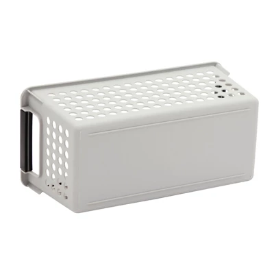 - Plastic Storage Basket: Create a custom organization system in your bathroom, wash room, laundry room, hall closet, or playroom with these grey plastic baskets