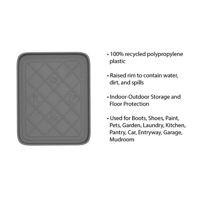 - The shoe mat tray features a 1-inch raised lip which helps contain messes from pet bowls, cat litter boxes, potted plants, or paint cans