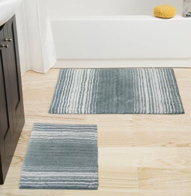 Gradiation Rug Collection includes attractive rugs that feature geometric lines in vertical fashion. Spruce up your bathroom area with these multicoloured rugs for both, nicely-done interior and functionality. Made in India, each rug is highly absorbent. With them on the floor, rest assured the floor will be dry even after a shower. Step on them and they won’t slip. The collection has single rugs and sets to make sure all your needs are met. Gradiations rugs are available in different colours, so you can choose the best for your home interior. Special cut-out rugs are available for toilet seats as well.