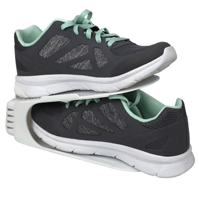 Avoid shoe clutter and maximize space with this space saver shoe storage rack. Made of durable plastic, with a no-slip design, its sturdy platform stacks one shoe on top of one making it easy to find the pair of shoes you need quickly, while also keeping everything tidy and orderly. The compact design fits under the bed when not in use or behind the door when in use. The thick plastic construction prevents this shoe organizer from easily getting broken.