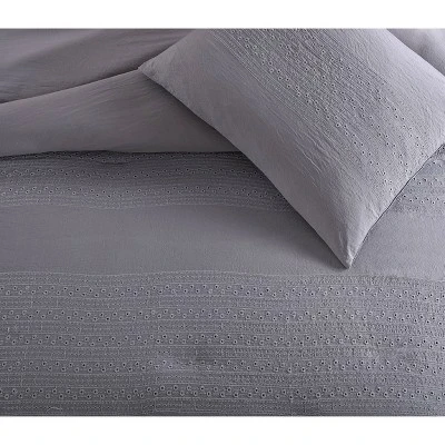 Get a great nights sleep with the Lyla 3pc Comforter Set. Made from super soft enzyme washed microfiber, this set is incredibly soft to the touch. Accented with a feminine eyelet banded detail, this set provides the girly and sophisticated feel you’ve been searching for. Machine washable. Made of 100% Microfiber