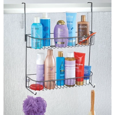 Keep all of your shower go-to’s close by with the Over the Door Shower Caddy from mDesign. Two wide shelves and two hooks hold all of your shower essentials in one convenient place inside the shower and two larger hooks hold towels and robes outside the shower. Install the caddy instantly by hanging over your shower door; No worrying about the caddy slipping or sliding, two strong suction cups help it stay in place. Water flows away through the gridded design, letting items dry completely and quickly between every use.