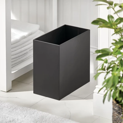 This stylish rectangular bathroom wastebasket from mDesign is as functional as it is attractive. Perfectly sized for smaller spaces, it has plenty of room for holding routine bathroom waste or storing recyclables and household items. Made of high quality, durable materials designed for bathroom environments, this waste bin stands up to everyday use and looks chic while doing so. With its sleek profile, this sturdy bin will add instant elegance to your home. Modern living by design.
