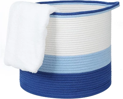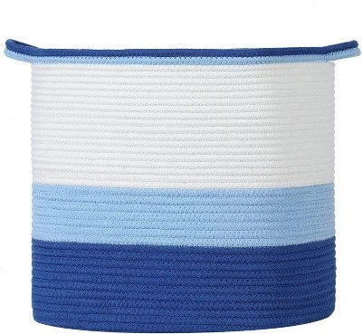 The Midlee Blue 3 Tone Toys Basket is made of both rope and cotton. It will meet all of your toy storage needs and is perfect for playrooms, living rooms, nursery’s, and more. The Ombre shade gives the basket a unique touch. It is flexible enough to form to whatever you are needing to put inside with plenty of room for a variety of different things. Get organized today!