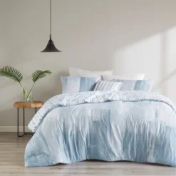 4pc King Brush Stroke Oversized Reversible Seersucker Comforter Set Blue – N Natori