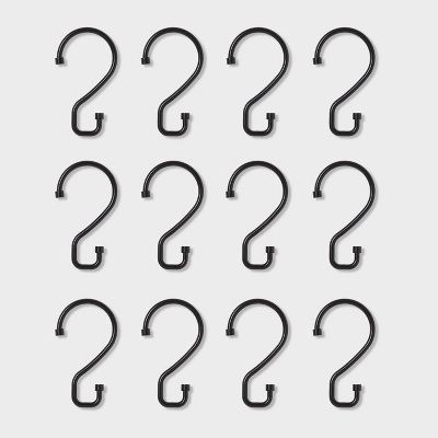 Hanging your shower curtain is a breeze with these S Hook Shower Curtain Rings Without Roller Ball from Made By Design™. This pack includes 12 S-hook shower curtain rings. The S-shaped rings slip right through shower curtain holes and hook onto the shower rod for effortless installation, and they slide across the rod so you can adjust the curtain with ease. Plus, the matte black finish makes them an easy pairing with your existing bathroom decor.