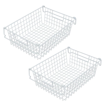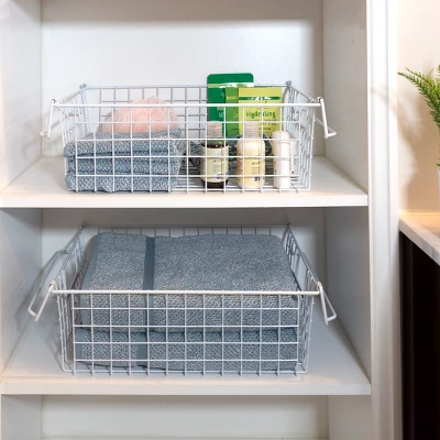 - SET OF 2 BASKETS – This storage basket set comes with 2 wire baskets for closet, bathroom, pantry, and kitchen organization. The bathroom storage bins are stackable to save space, perfect for small kitchens, apartments, dorm rooms, or RVs.