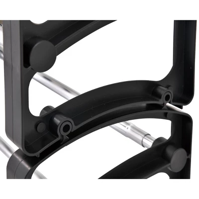 Organize your shoe collection with Seville Classics 4-Tier Expandable Shoe Rack Organizer. This lightweight, easy-to-build shoe rack provides room for more than 20 shoes. This unit can build a single 4-tier rack or two standalone 2-tier racks. Simply fit the poles into the side frames and stack the frames to assemble. Upgrade with additional units for more storage in the same footprint. The side frames are made of reinforced plastic with large top handles for easy transport. No tools are required for assembly. Simply fit the poles into the frame and stack as desired. To clean, wipe with mild soap and warm water (do not submerge.) This shoe rack is a simple and affordable solution for dorm room, apartment, bedroom and closet organization. The rack stands 25.2 inches tall, 7 inches deep and extends from 22.4 inches up to 25.2 inches wide.