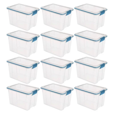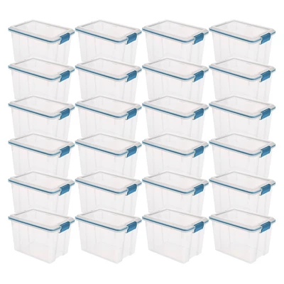 Whether you’re a college student living in a dorm, a parent looking for bath storage for your kid’s toys, or anything in-between, we all need a little organization in our lives. Get rid of unsightly clutter in your home, dorm room, or garage with the 12-Pack of Sterilite 20-Quart Container Totes.This package includes clear, plastic storage containers that are great for organizing paperwork, school projects, and photographs. These storage boxes have gasket seals lining the lid, which keep your items secure. The seals are resistant to air and moisture and keep pet food and bulk foods fresher for longer.The clear plastic base and lid make it easy for you to see the contents, so you don’t have to dig around to find what you need. The handles are comfortable and optimal for transportation. Store your items safely and protect them from air and moisture in the 12-Pack Sterilite 20-Quart Gasket Clear Storage Boxes.