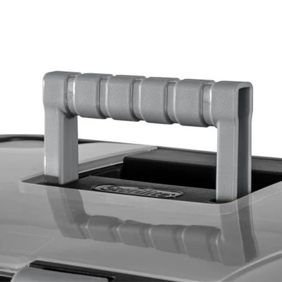 - Clear lid with titanium gray latches for increased security