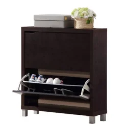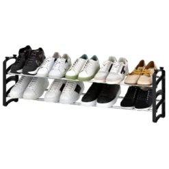 Tangkula 7-Tier Double Rows Shoe Rack Vertical Wooden Shoe Storage Organizer Rustic Brown/White